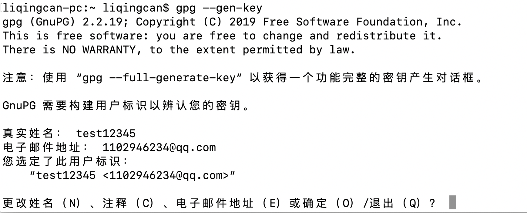 生成gpg密钥