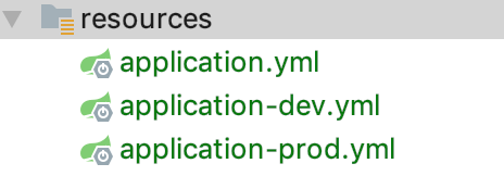 我们在resources目录下新建springboot的配置文件application.yml,内容暂时放空。因为我们要建开发和生产2个环境的配置,所以我们在resources目录下再新建application-dev.yml和application-prod.yml两个文件。结构如下:
