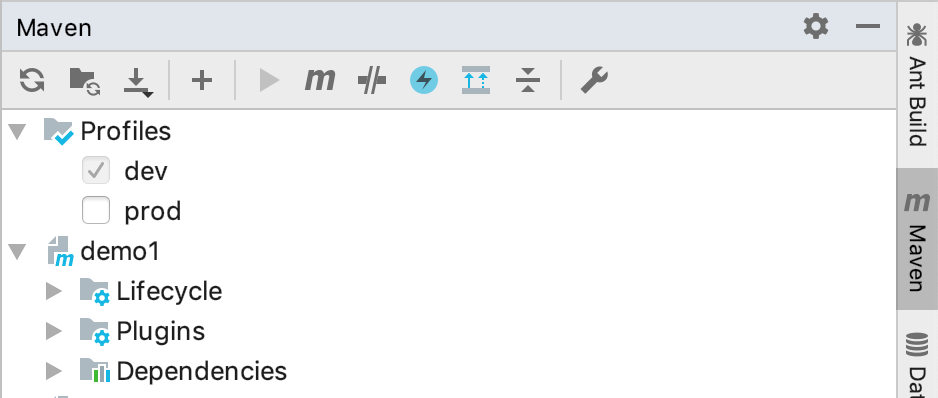 只需要勾选相应的选项即可切换到对应的环境。如何实现呢?我们只需要在项目的pom文件中增加