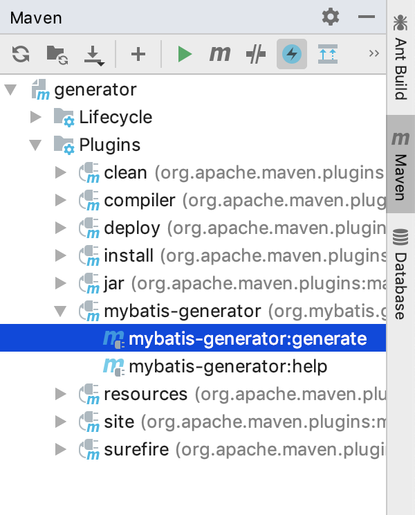至此配置的部分已经完成,接下来就是运行MyBatis Generator生成代码了,可以使用以下命令: