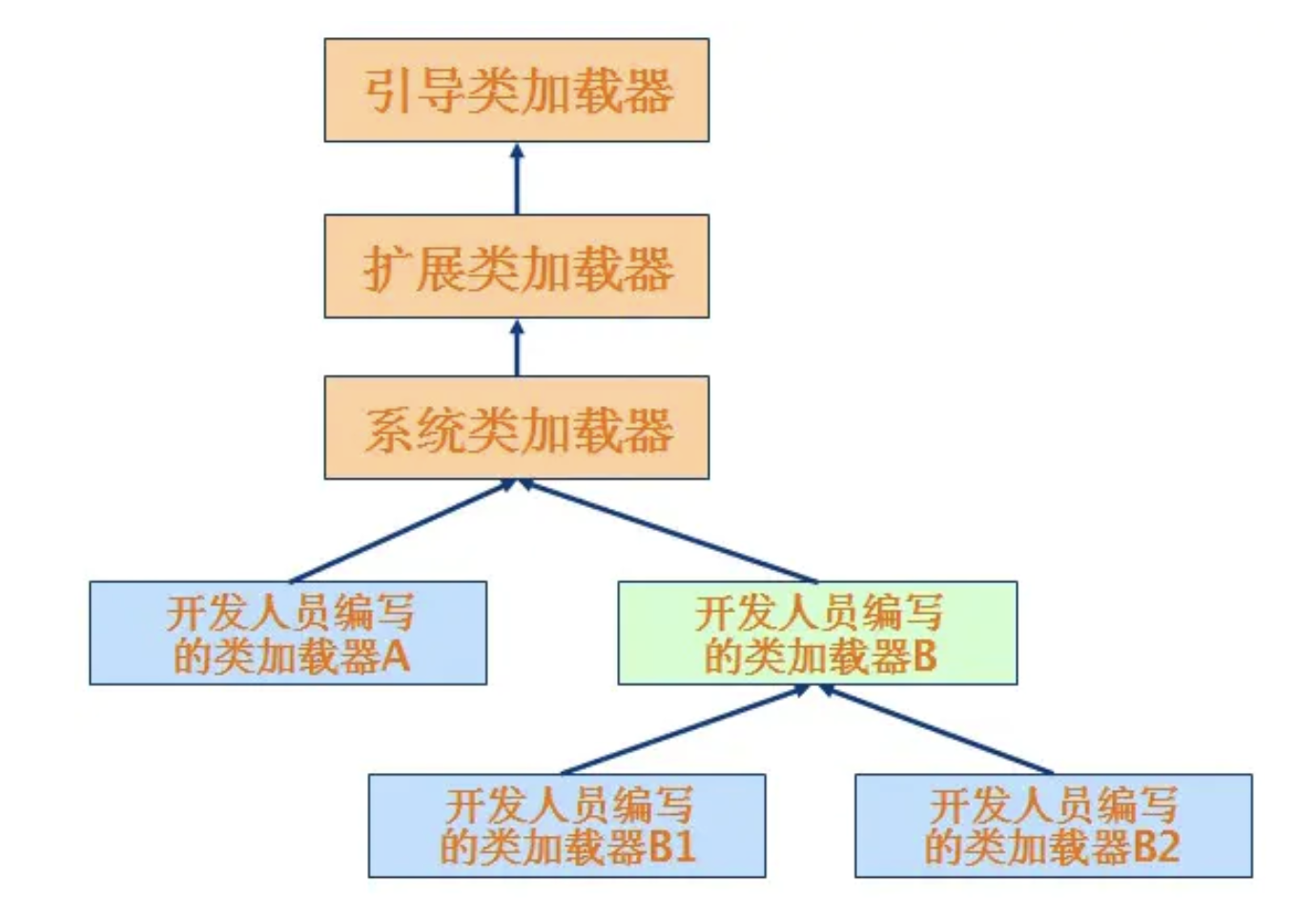 这个类加载器负责将\lib目录下的类库加载到虚拟机内存中,用来加载java的核心库,此类加载器并不继承于java.lang.ClassLoader,不能被java程序直接调用,代码是使用C++编写的,是虚拟机自身的一部分。