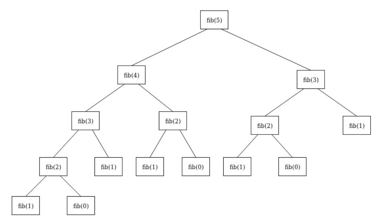 递归是最简单的一个解法,但是性能上不行,因为会有很多重复的计算,比如计算fib(5),就要重复的调用5次fib(1),性能严重浪费。