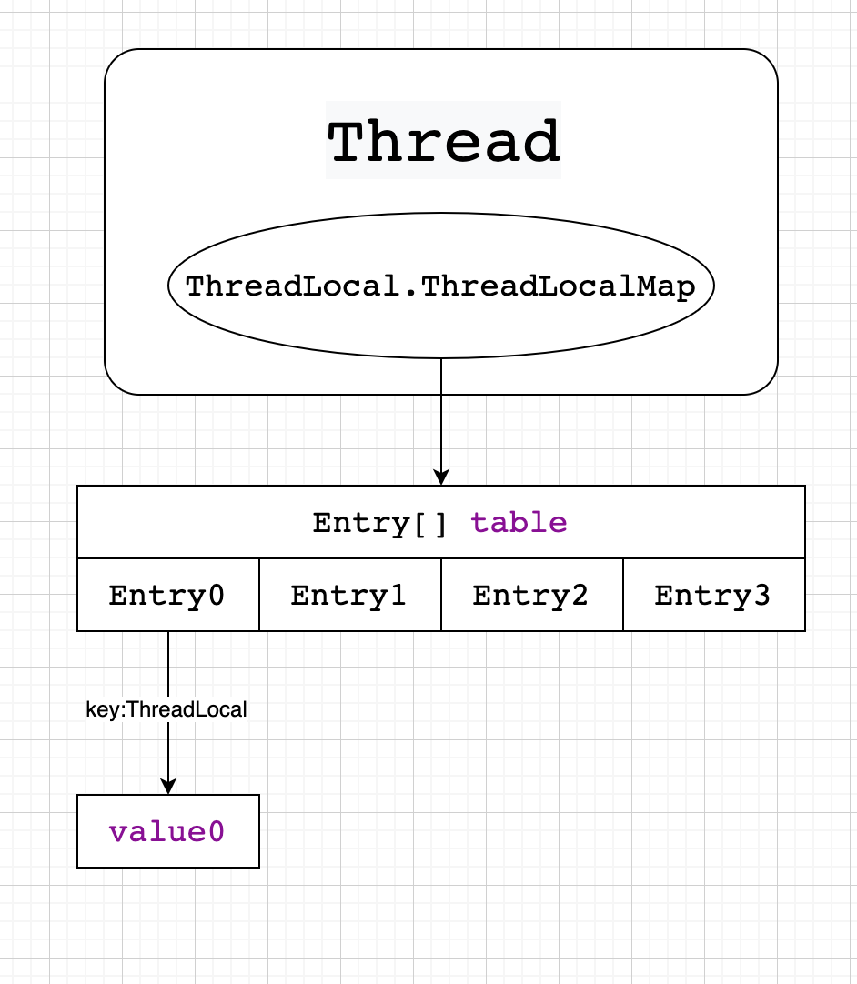 可以看到,ThreadLocal的get和set方法,其基本操作都是从当前的线程对象中获取到一个map对象,然后通过map对象来获取对应的值。所以不难猜测,整个ThreadLocal的核心就是ThreadLocalMap。不废话,我们直接看整个数据存储的一个基本模型。